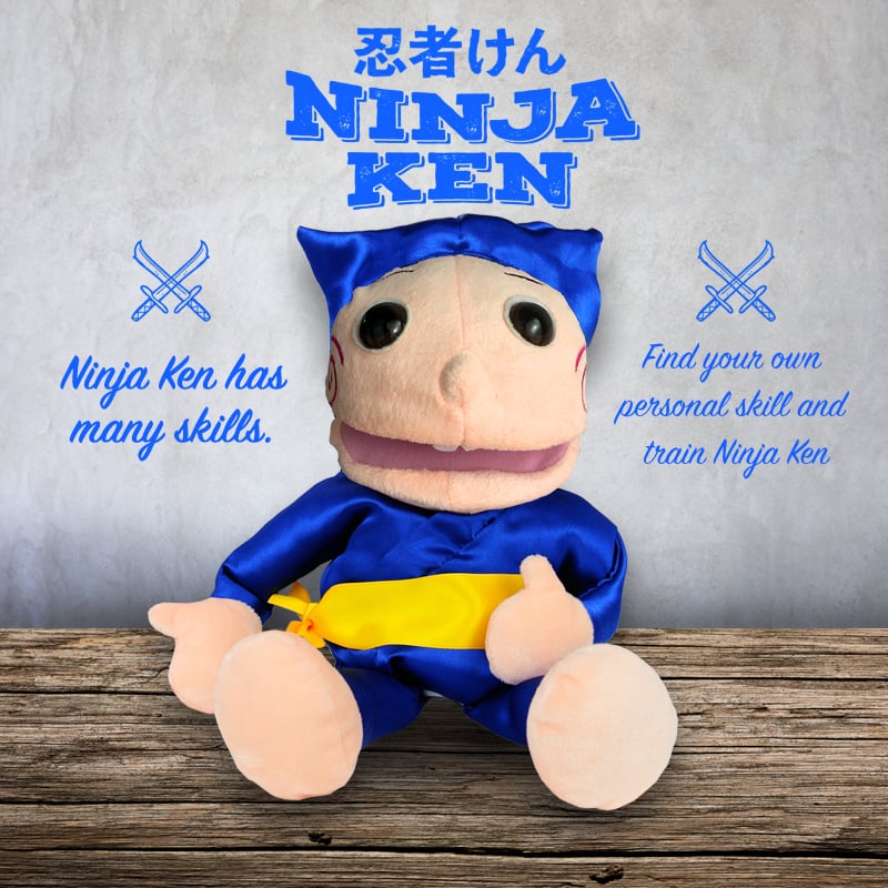 Find your own personal skill and train Ninja Ken to protect you...and make some jokes! Ninja Ken is an original soft ventriloquist hand puppet.